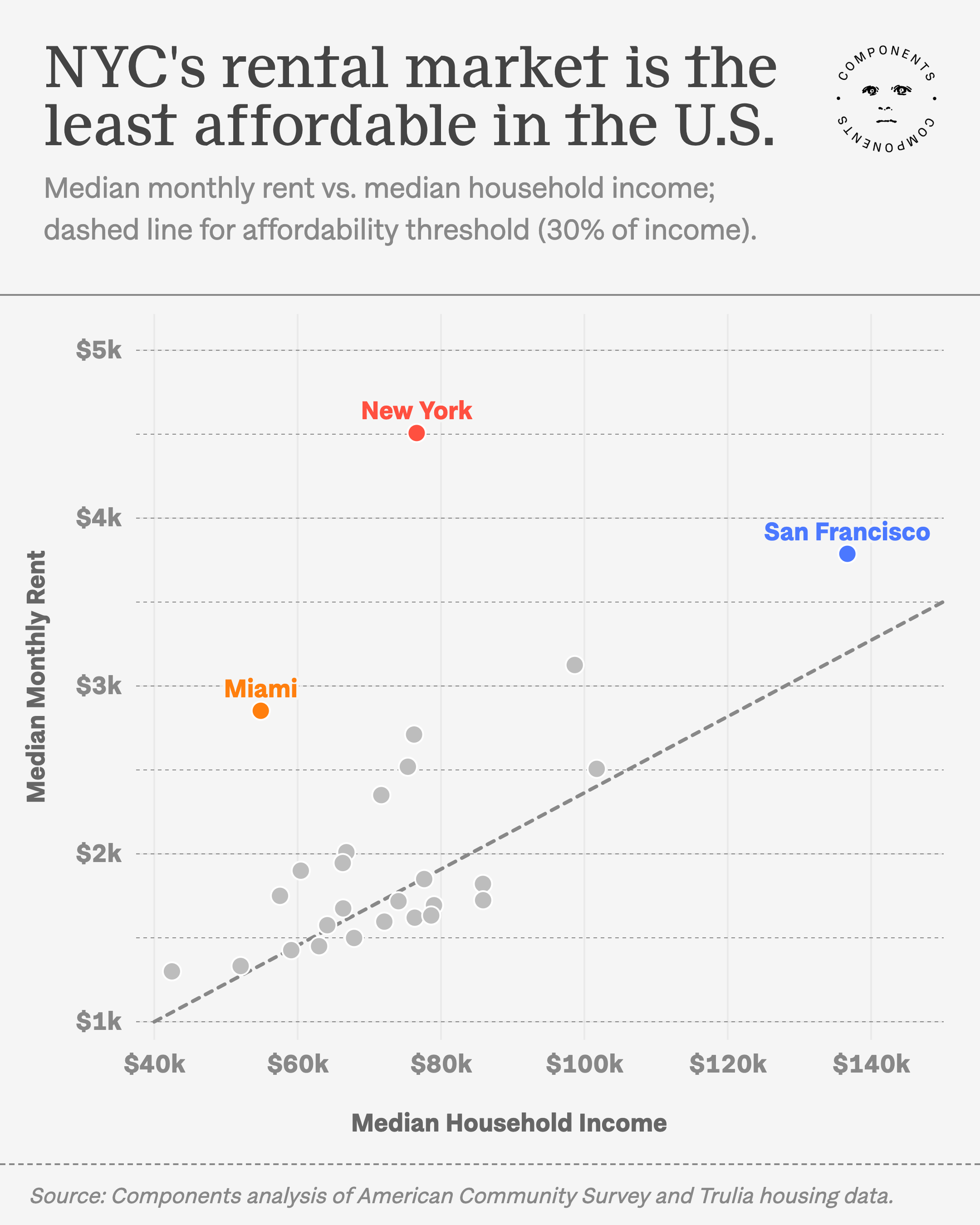 - It's also the nation's most unaffordable market for renters, as a Components analysis of the American Community Survey and Trulia housing data finds.
