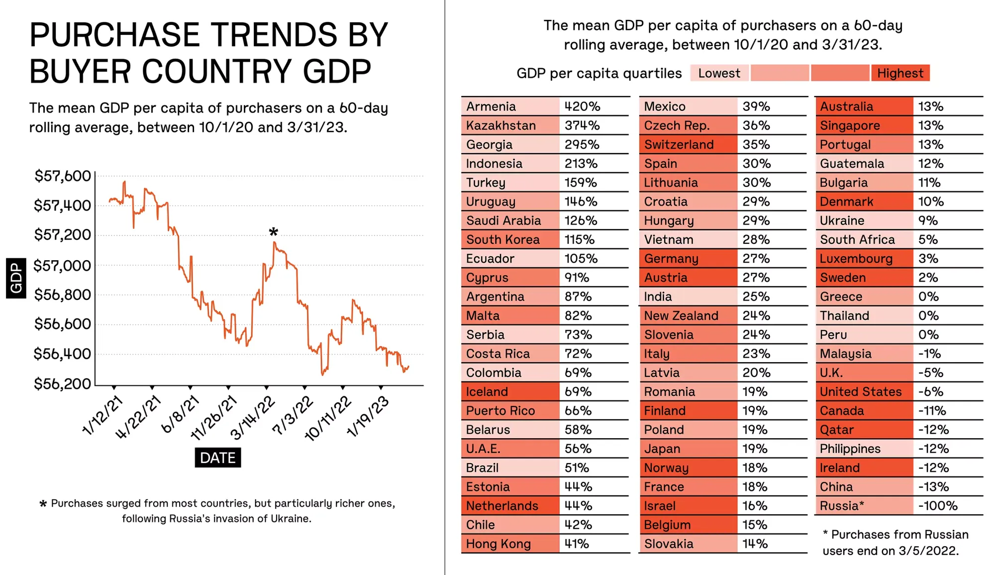 However, the people from those countries that lean towards tracks take up a larger share of Bandcamp's customer base, which has undergone a fairly substantial shift away from the richer countries that previously provided the bulk of its buyers.
