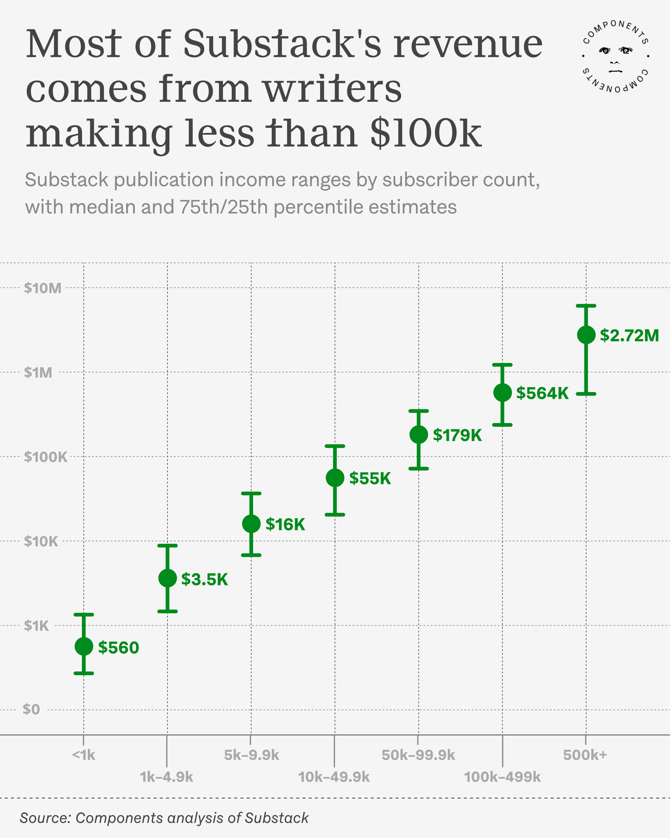 - A Components analysis estimates that about $600 million will be spent on Substack subscriptions this year.
